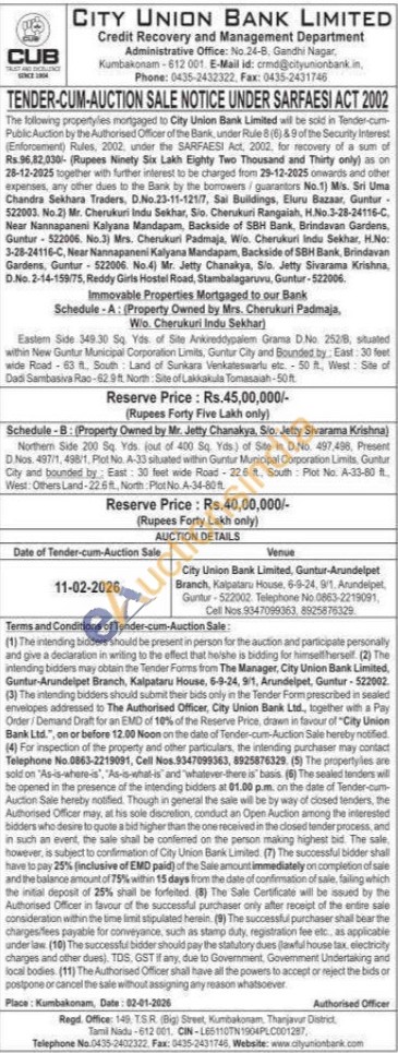 Schedule-B: (Property Owned by Mr. Jetty Chanakya, Sio. Jetty Sivarama Krishna) Northern Side 200 Sq. Yds. (out of 400 Sq. Yds) of Site in D.No. 497,498, Present D.Nos. 497/1, 498/1, Plot No. A-33 situated within Guntur Municipal Corporation Limits, Guntur City and bounded by: East: 30 feet wide Road-22.6 ft, South Plot No. A-33-80 ft West: Others Land-22.6ft, North: Plot No. A-34-80ft