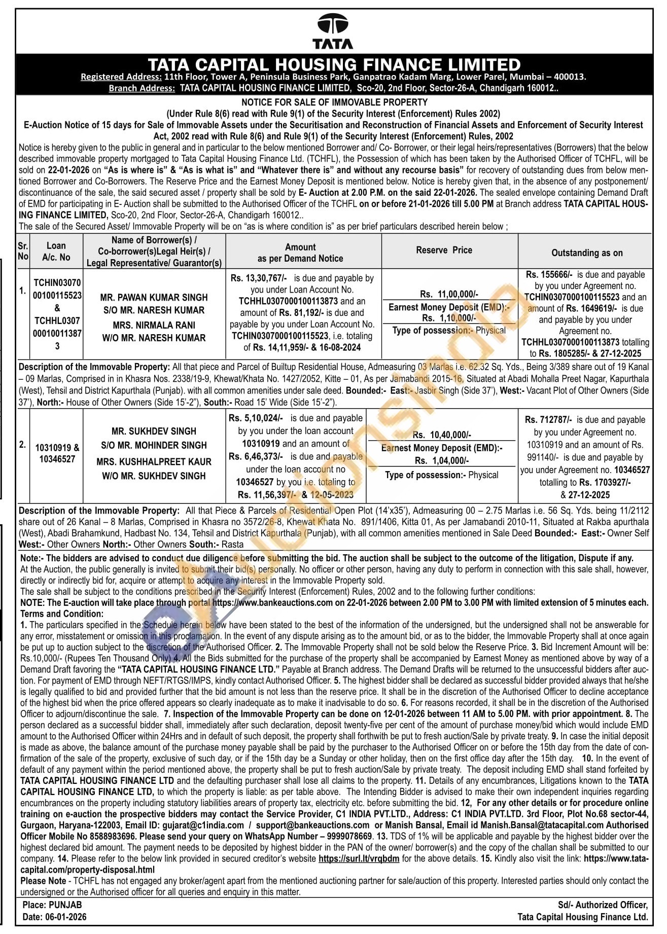 All that piece and Parcel of Builtup Residential House, Admeasuring 03 Marlas i.e. 62.32 Sq. Yds., Being 3/389 share out of 19 Kanal 09 Marlas, Comprised in in Khasra Nos. 2338/19-9, Khewat/Khata No. 1427/2052, Kitte-01, As per Jamabandi 2015-16, Situated at Abadi Mohalla Preet Nagar, Kapurthala (West), Tehsil and District Kapurthala (Punjab). with all common amenities under sale deed. Bounded:- East:- Jasbir Singh (Side 37'), West:- Vacant Plot of Other Owners (Side 37'), North:- House of Other Owners (Side 15'-2"), South:- Road 15' Wide (Side 15'-2").