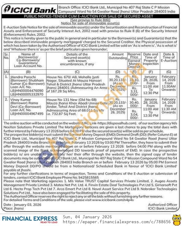 House No 131 New (Old No 68) Mauza Jhansi Khas Abadi Unnao Gate Andar, Tehsil And District Jhansi. Admeasuring Area of 68.011 Sq Mtr i.e. 732.87 Sq Feet