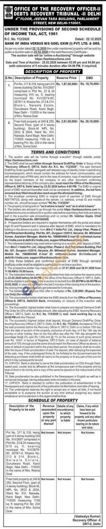 Free hold property at 249 & 250, Second Floor, (part of 4 storey building), Block-M, MPL No. 2633 & 2634, Ward No XVI, Naiwala, Karol Bagh, New Delhi-110005 measuring 1159 sq. ft. bearing Pvt. No. 204 in the name of Mrs. Sonia Goel