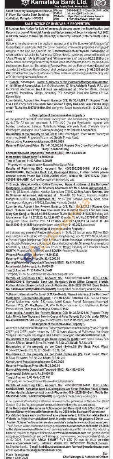 All that part and parcel of Residential Property with land admeasuring 50 cents bearing Sy. No. 379/1A2 (As per document) & 379/1/A2C (As per Eyesketch), together with building constructed thereon, Muttathody Village, Alampady Post, Chengala Grama Panchayath, Kasargod Taluk & District belonging to Mr.Shereef Aboobacker.