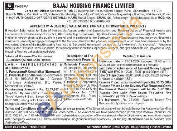 Schedule Property All that piece and parcel of the immovable property Being Flat No 10 Second Floor Ganesh Chaitanya, Cooperative Housing Society Ltd Plot No 121314, Out Of S No 16 Hissa No 3212 Ambegaon BK, Pune