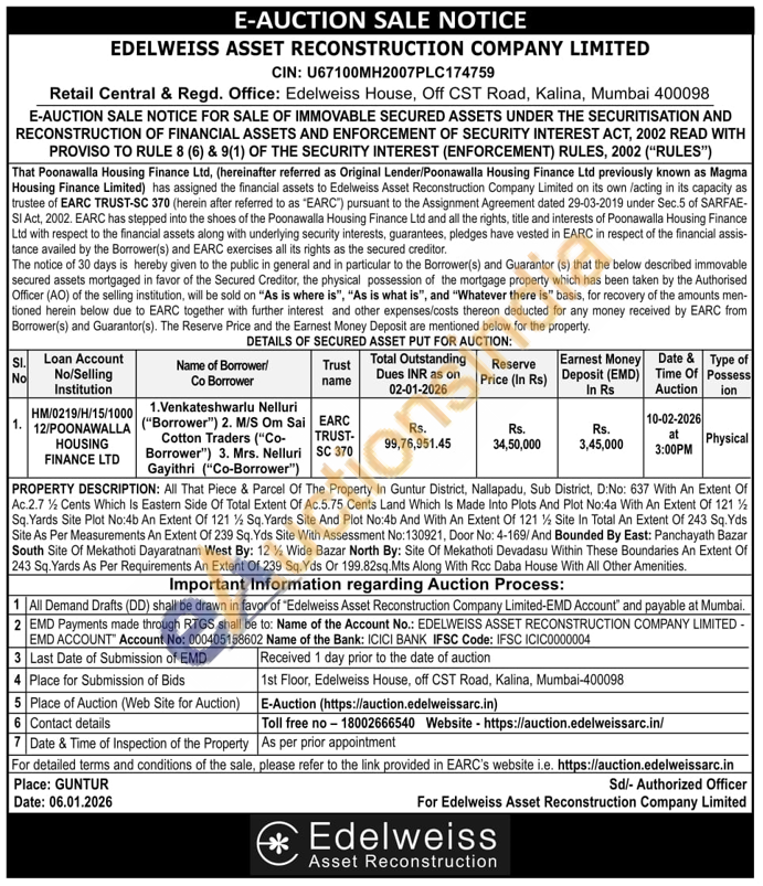 All That Piece & Parcel Of The Property In Guntur District, Nallapadu, Sub District, D:No: 637 With An Extent Of Ac.2.7 % Cents Which Is Eastern Side Of Total Extent Of Ac.5.75 Cents Land Which Is Made Into Plots And Plot No:4a With An Extent Of 121 ½ Sq. Yards Site Plot No:4b An Extent Of 121% Sq. Yards Site And Plot No:4b And With An Extent Of 121% Site In Total An Extent Of 243 Sq. Yds Site As Per Measurements An Extent Of 239 Sq. Yds Site With Assessment No:130921, Door No: 4-169/And Bounded By East: Panchayath Bazar South Site Of Mekathoti Dayaratnam West By: 12 ½ Wide Bazar North By: Site Of Mekathoti Devadasu Within These Boundaries An Extent Of 243 Sq. Yards As Per Requirements An Extent Of 239 Sq. Yds Or 199.82sq. Mts Along With Rcc Daba House With All Other Amenities.