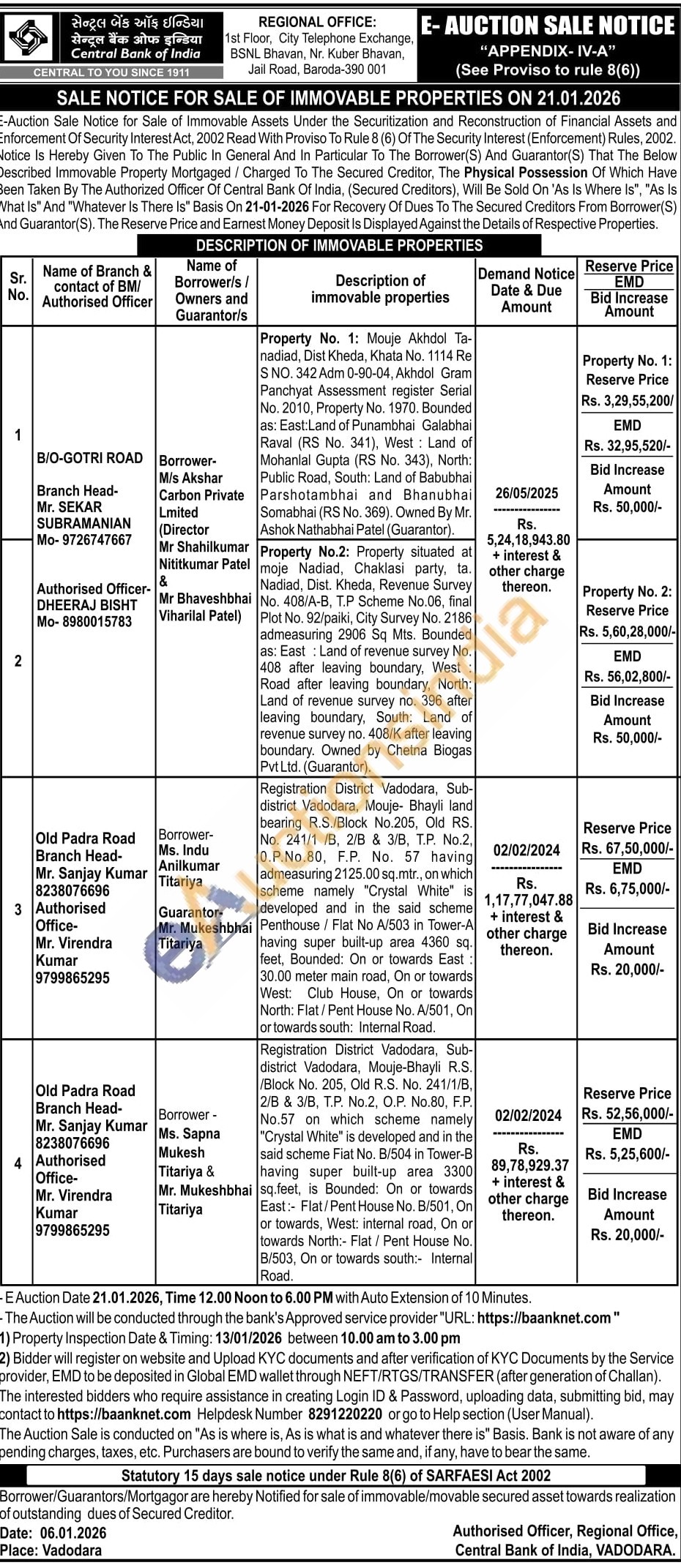 Property No. 1: Mouje Akhdol Ta-nadiad, Dist Kheda, Khata No. 1114 Re S NO. 342 Adm 0-90-04, Akhdol Gram Panchyat Assessment register Serial No. 2010, Property No. 1970. Bounded as: East:Land of Punambhai Galabhai Raval (RS No. 341), West Land of Mohanlal Gupta (RS No. 343), North: Public Road, South: Land of Babubhai Parshotambhai and Bhanubhai Somabhai (RS No. 369). Owned By Mr. Ashok Nathabhai Patel (Guarantor).