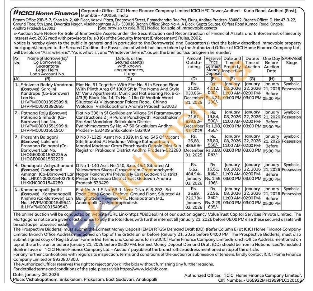 1)Plot No. 61 Together With Flat No. 5 In Second Floor With Plinth Area Of 1000 Sft In The Name And Style Of Venu Apartments, Municipal Flat Bearing No. 8-3-4/3(5) Block No. 14, Ts No. 116a Of Waltair Ward Situated At Vijayanagar Palace Road, Chinna Walatair Vishakapatnam Andhra Pradesh 530023