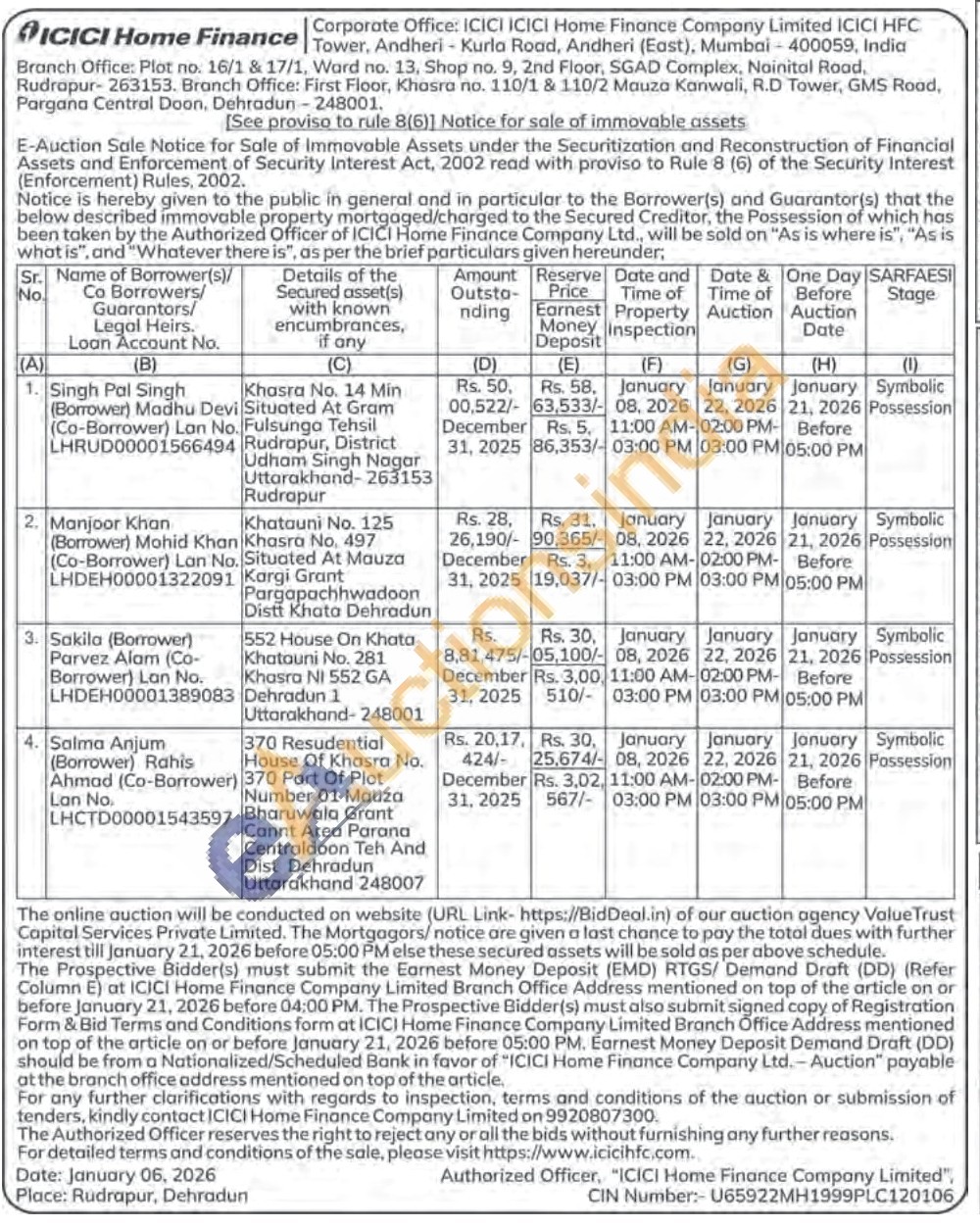 contact ICICI Home Finance Company Limited on 9920807300.