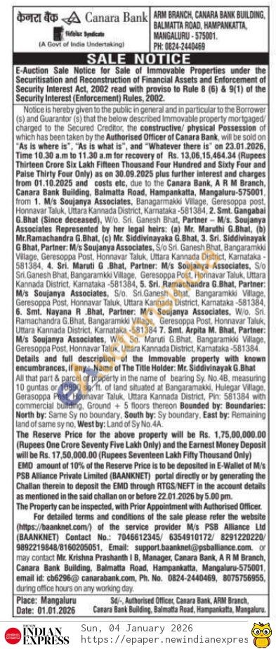 All that part & parcel of property in the name of bearing Sy. No. 4B, measuring 10 guntas or 10890 sq. ft. of land situated at Bangaramakki, Hulegar Village, Gerasoppa Post, Honnavar Taluk, Uttara Kannada District, Pin: 581384 with commercial building, Ground + 5 floors thereon Bounded by: Boundaries: North by: Same Sy no boundary, South by: Sy boundary, East by: Remaining land of same sy no, West by: Land of Sy No.4A