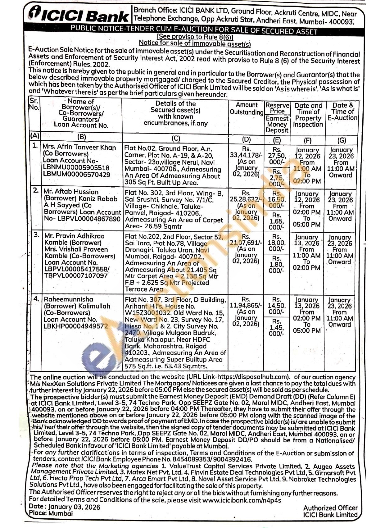 Flat No. 307, 3rd Floor, D Building. Arihant Hills, House No. W15Z3001032, Old Ward No. 15. New Ward No. 23, Survey No. 17, Hissa No. 1 & 2. City Survey No. 2470, Village Mulgaon Budruk, Taluka Khalapur, Near HDFC Bank, Maharashtra, Raigad 410203., Admeasuring An Area of Admeasuring Super Builtup Area 575 Sq.ft. i.e. 53.43 Sq.mtrs.