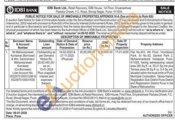 Flat No.403, 4th Floor. Vrundavan Park. Sr No.92. Sanket Park 2. Mohammadwadi. Hadapsar, Pune-411028, having admeasuring carpet area 380 Sq ft. le. 35.31 Sq mir plus Terrace area 59 Sqftie. 54 Sq mir, situated within the local limits of Pune Municipal Corporation, Taluka-Haveli Registration Sub-District Pune District and Registration District Pune in the State of Maharashtra