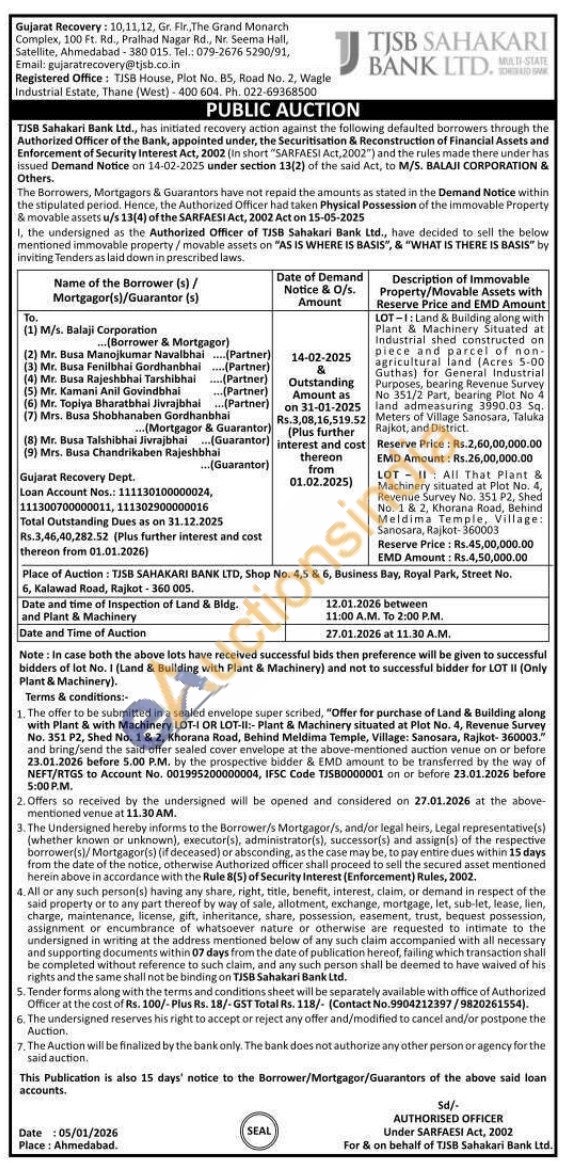 All That Plant & Machinery situated at Plot No. 4, Revenue Survey No. 351 P2, Shed No. 1 & 2, Khorana Road, Behind Meldima Temple, Village: Sanosara, Rajkot-360003