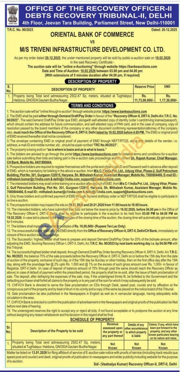 Property being Total land admeasuring 2502.47 Sq. meters, situated at Tughlakpur, Haldona, GNOIDA Gautam Budha Nagar
