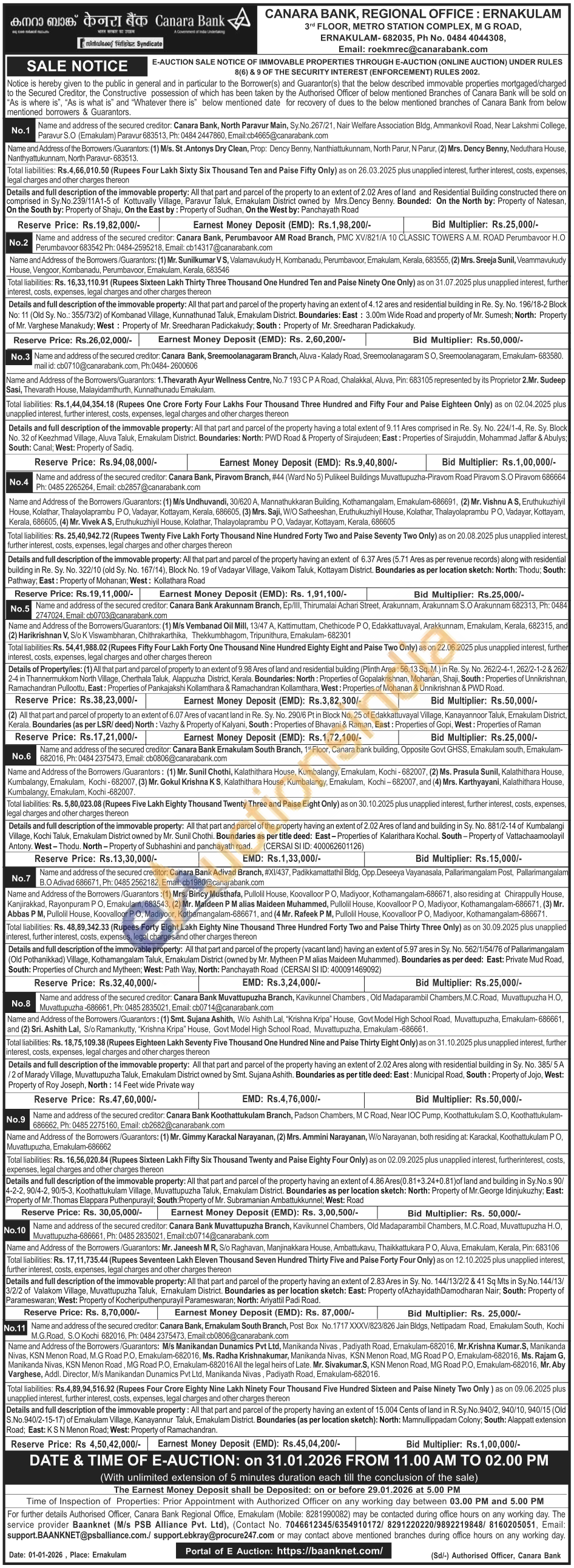 Contact Ph: 0485 2265264, Email: cb2857@canarabank.com