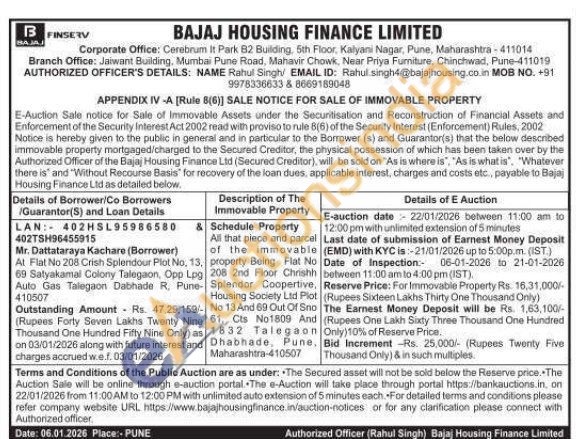 All that piece and parcel of the immovable property Being Flat No 208 2nd Floor Chrishh Splendor Coopertive, Housing Society Ltd Plot No 13 And 69 Out Of Sno 61, Cts No1809 And 1832 Talegaon Dhabhade, Pune, Maharashtra-410507