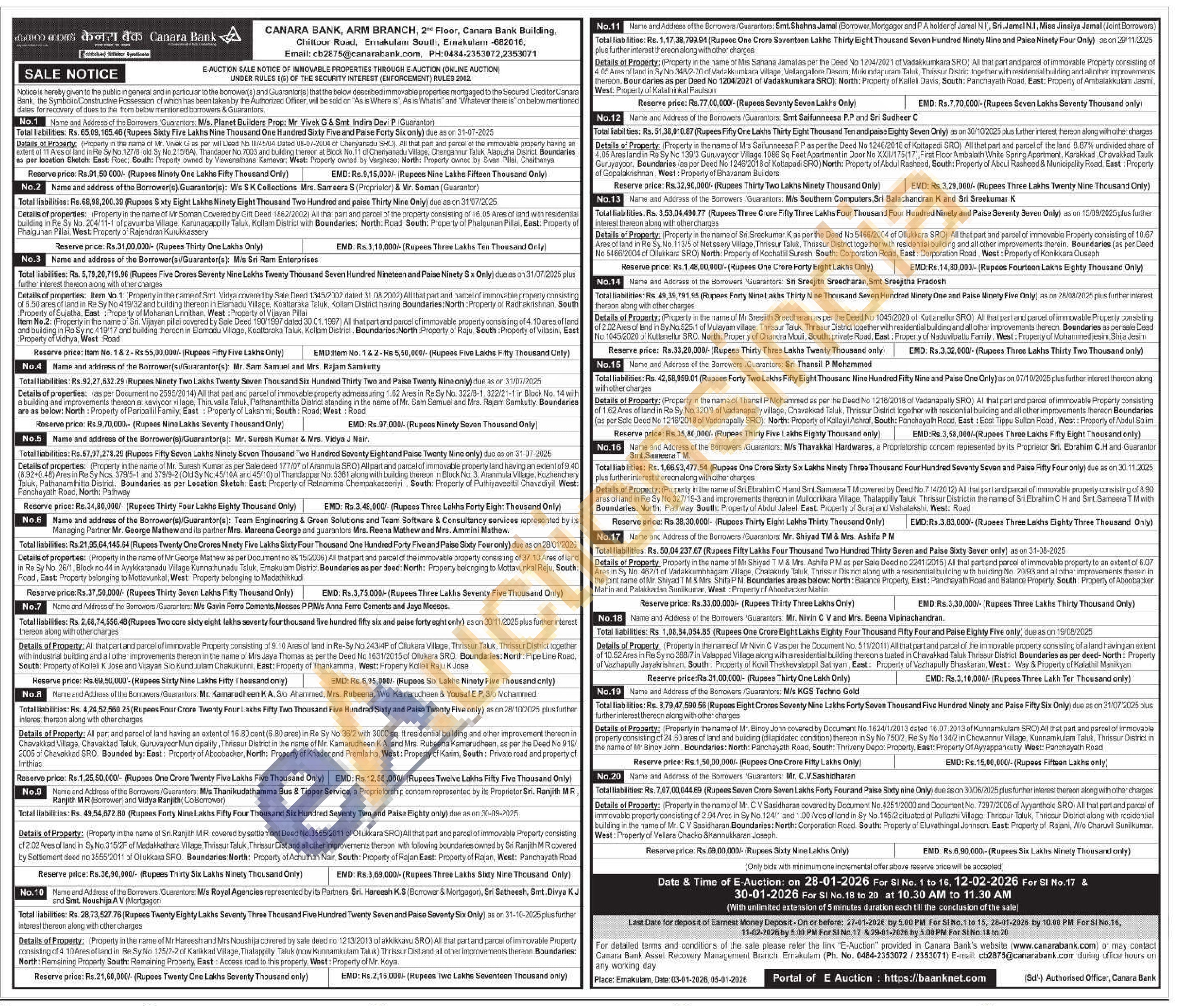 17) All that part and parcel of immovable property to an extent of 6.07 Ares in Sy No. 462/1 of Vadakkumbhagam Village, Chalakudy Taluk. Thrissur District along with a residential building with building No. 20/93 and all other improvements therein in the joint name of Mr. Shiyad TM & Mrs. Shifa PM. Boundaries are as below: North: Balance Property, East: Panchayath Road and Balance Property, South: Property of Aboobacker Mahin and Palakkadan Sunilkumar, West: Property of Aboobacker Mahin