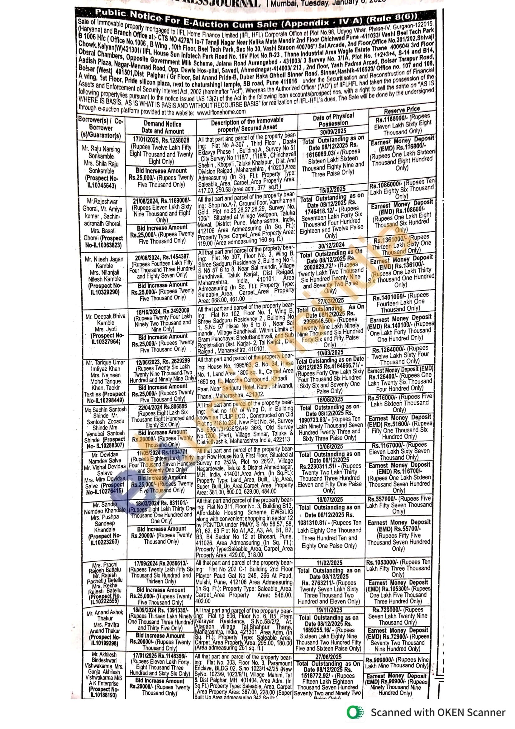 All that part and parcel of the property bear-ing: Flat No 702, Building No A/4, 7TH Floor, Building known as MAA VAISHNAVI PARK, Building No A/3, & A/4, Co-op Hsg Soc Ltd, Situated at village Katemanivali, Kalyan East, Tal. Kalyan, District Thane, MH, India, 421306. Area Admeasuring (In Sq. Ft.): Property Type: Carpet Area Property Area: 485 (Area admeasuring 739 sq. ft.)