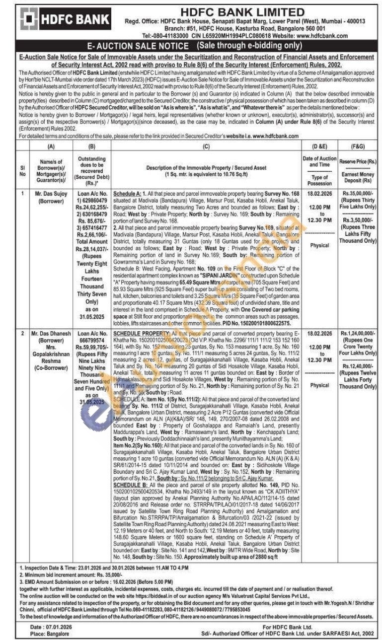 SCHEDULE PROPERTY: All that piece and parcel of converted property bearing E-Khatha No. 150200102500420023 (Old V.P. Khatha No. 2296/111/1 111/2 153 152 160 164), with Sy. No. 152 measuring 25 guntas, Sy. No. 153 measuring 1 acre, Sy. No. 160 measuring i acre 10 guntas, Sy. No. 111/1 measuring 5 acres 24 guntas, Sy. No. 111/2 measuring 2 acres 12, guntas, of Suragajakkanahalli Village, Kasaba Hobli, Anekal Taluk and Sy. No. 164 measuring 20 guntas of Sidi Hosakote Village. Kasaba Hobli, Anekal Taluk, totally measuring 11 acres 11 guntas bounded on: East by: Border of Honnakalasapura and Sidi Hosakote Villages, West by: Remaining portion of Sy. No. 111/1 and Remaining portion of Sy. No. 21, North by: Remaining portion of Sy. No. 21 and Sy. No. 55, South by: Road. SCHEDULE A: Item No. 1(Sy No.111/2): All that piece and parcel of the converted land bearing Sy. No. 111/2 of District, Suragajakkanahalli Village, Kasaba Hobli, Anekal Taluk, Bangalore Urban District, measuring 2 Acre P12 Guntas (converted vide Official Memorandum on ALN (A)(K&A)/SR/ 148, 149, 270/2007-08 dated 26.02.2008 and bounded East by Property of Goshalappa and Ramalah's Land, presently Maddurappa's Land, West by: Ramaswamy's land, North by Kenchappa's Land; South by: Previously Doddachinnaiah's land, presently Munithayamma's Land; Item No.2(Sy No.160): All that piece and parcel of the converted lands in Sy. No. 160 of Suragajakkanahalli Village, Kasaba Hobii, Anekal Taluk, Bangalore Urban District measuring 1 acre 10 guntas (converted vide Official Memorandum No. ALN (A) (K & A) SR/61/2014-15 dated 10/11/2014 and bounded on: East by: Sidihoskote Village Boundary and Sri C. Ajay Kumar Land, West by: Sy. No. 152, North by: Remaining portion of Sy. No.21, South by: Sy. No. 111/2 belonging to Sri C. Ajay Kumar.