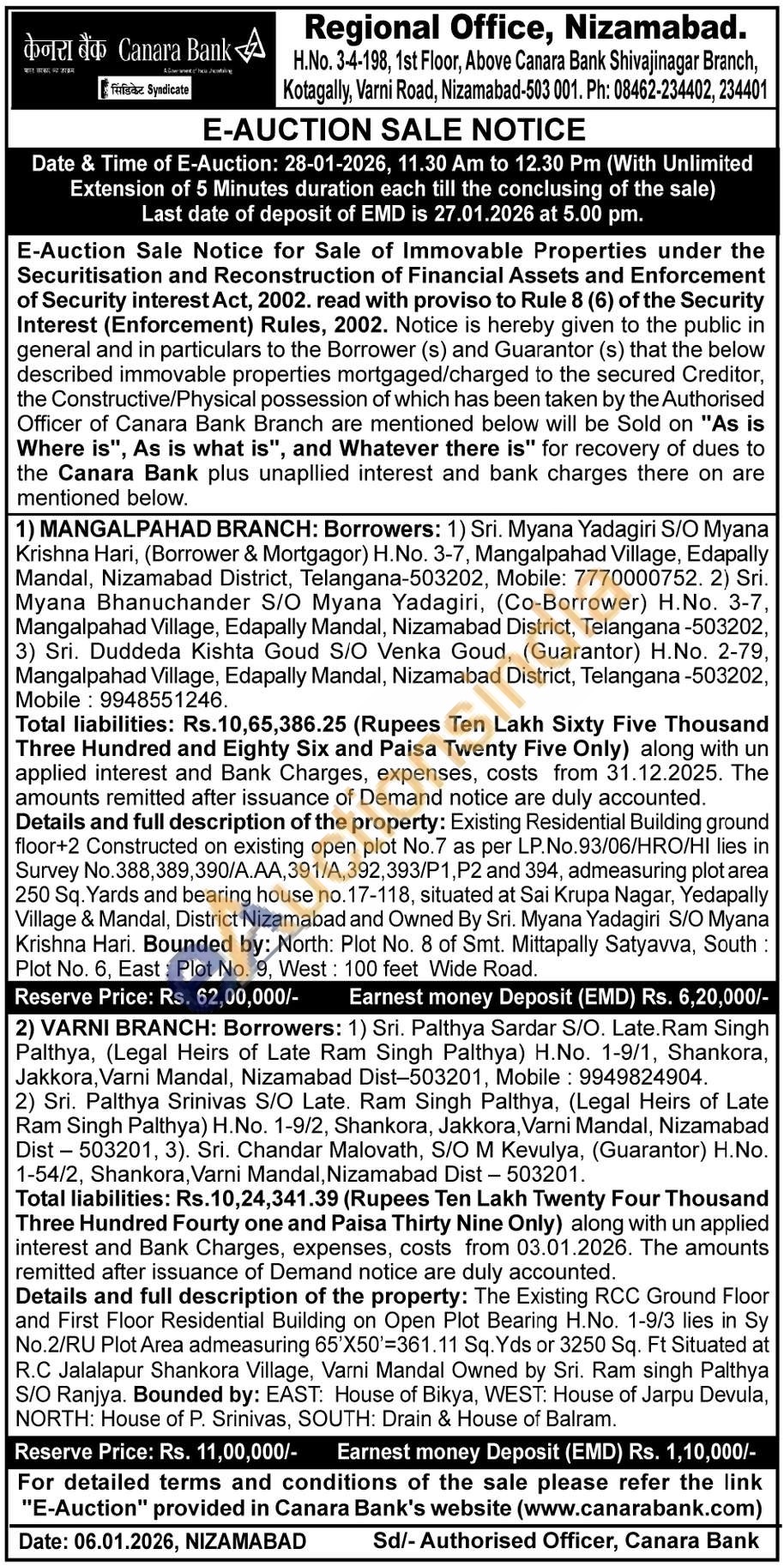 Details and full description of the property: Existing Residential Building ground floor+2 Constructed on existing open plot No.7 as per LP.No.93/06/HRO/HI lies in Survey No.388,389,390/Α.ΑΑ, 391/A,392,393/P1,P2 and 394, admeasuring plot area 250 Sq. Yards and bearing house no. 17-118, situated at Sai Krupa Nagar, Yedapally Village & Mandal, District Nizamabad and Owned By Sri. Myana Yadagiri S/O Myana Krishna Hari. Bounded by: North: Plot No. 8 of Smt. Mittapally Satyavva, South Plot No. 6, East: Plot No. 9, West: 100 feet Wide Road.