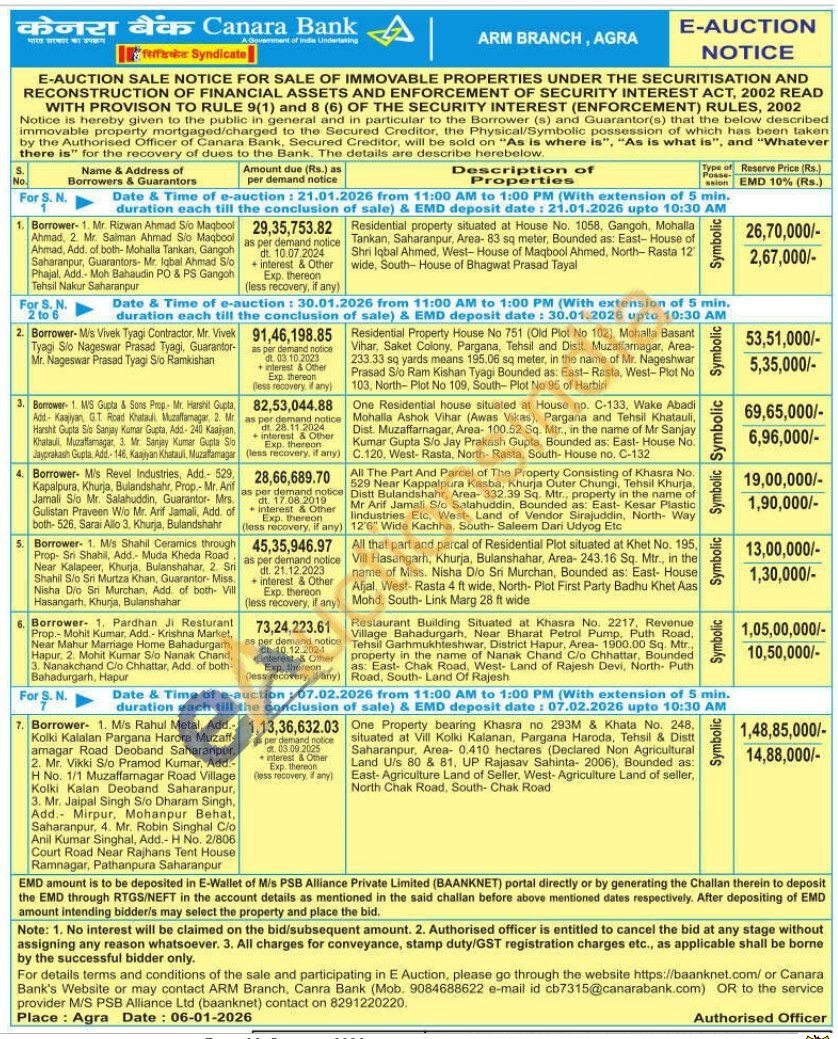 Residential property situated at House No. 1058, Gangoh, Mohalla Tankan, Saharanpur, Area-83 sq meter, Bounded as: East- House of Shri Iqbal Ahmed, West-House of Maqbool Ahmed, North-Rasta 12 wide, South-House of Bhagwat Prasad Tayal