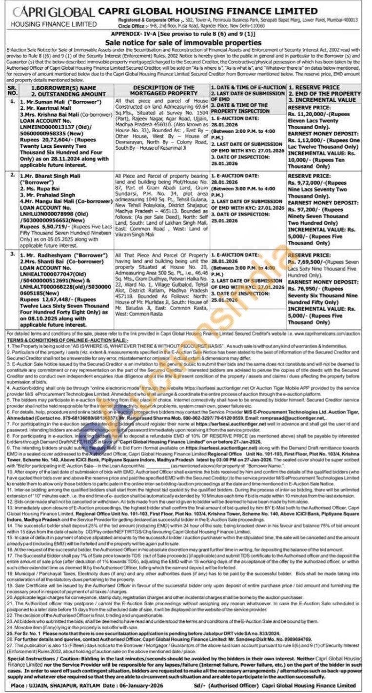 All That Piece And Parcel Of Property having land and building being unit the property Situated at House No. 20, Admeasuring Area 500 Sq. Pt, ile, 46.46 Sq. Mts, Gram Dudhiya, Patwari Halka No. 22, Ward No. 1, Village Gulbalod, Tehsil Alot, District Ratlam, Madhya Pradesh 457118. Bounded As Follows: North: House of Mr. Murlidas Ji, South: House of Mr. Baludas Ji, East: Common Rasta, West: Common Rasta