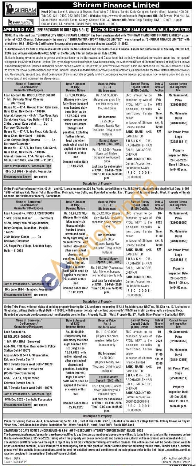 Property Bearing Plot No. 47-A, Area Measuring 59 Sq. Yds., Part of Khasra No. 29/18, Situated in the Area of Village Kakrola, Colony Known as Shyam Vihar, New Delhi. Bounded as Under: East: Other Plot, West: Road 20 Ft, North: Road 20 Ft, South: DDA Land