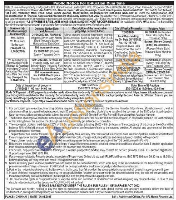 All that part and parcel of the property bearing Flat No. St, Second Floor, Plot No 1, Lakshmi Nagar, In Sno. 40/A1c, 440/A12, Patta No.6680, Situated At 6, Nandhivaram Village, Chengalpatu Tatak, Kancheepuram Dist. TN. 803202 Area Admeasuring (in Sq. Ft.) Property Type: Land area, Carpet, area, Bult, up area Property Area 503.00.632.00,950.00