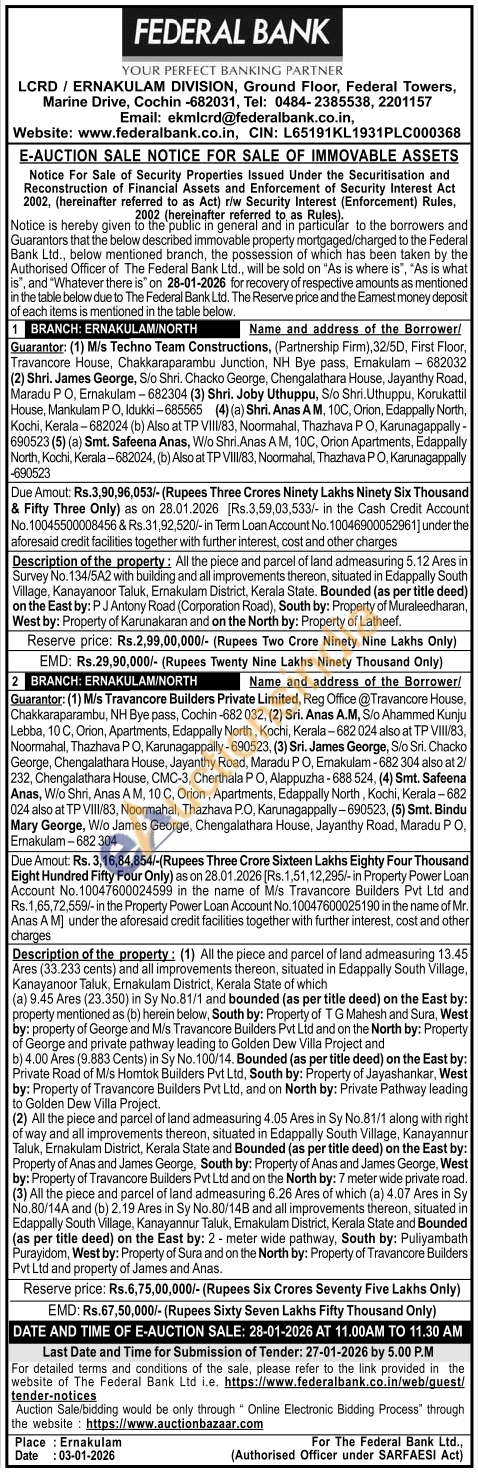 Description of the property: All the piece and parcel of land admeasuring 5.12 Ares in Survey No. 134/5A2 with building and all improvements thereon, situated in Edappally South Village, Kanayanoor Taluk, Ernakulam District, Kerala State. Bounded (as per title deed) on the East by: PJAntony Road (Corporation Road), South by: Property of Muraleedharan, West by: Property of Karunakaran and on the North by: Property of Latheef.