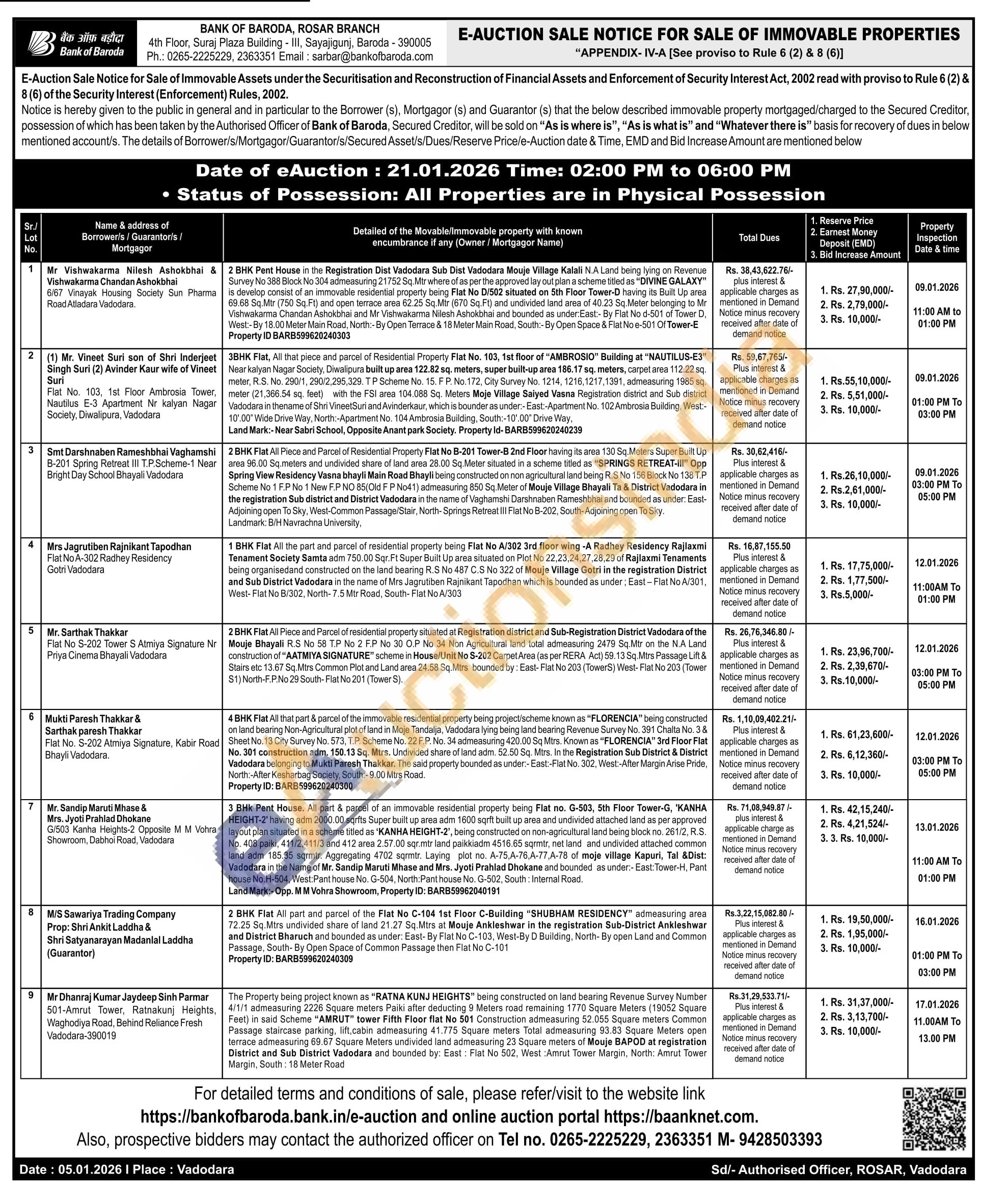 1 BHK Flat All the part and parcel of residential property being Flat No A/302 3rd floor wing -A Radhey Residency Rajlaxmi Tenament Society Samta adm 750.00 Sqr. Ft Super Built Up area situated on Plot No 22,23,24,27,28,29 of Rajlaxmi Tenaments being organisedand constructed on the land bearing R.S No 487 C.S No 322 of Mouje Village Gotri in the registration District and Sub District Vadodara in the name of Mrs Jagrutiben Rajnikant Tapodhan which is bounded as under: East-Flat No A/301, West-Flat No B/302, North-7.5 Mtr Road, South-Flat No A/303