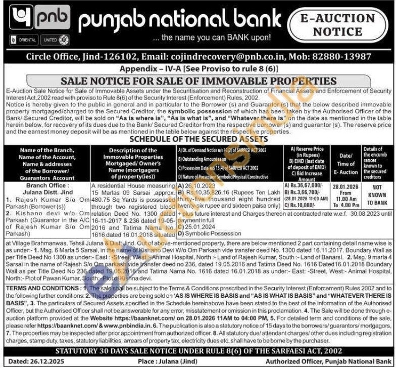 A residential House measuring 15 Marlas 09 Sarsai,approx. Om 480.75 Sq Yards is possessed through two registered blood 16-11-2017 & 236 dated 19-05-2016 and Tatima Nama No. Om relation Deed No. 1300 dated 1616 dated 16.01.2018 situatedat Village Brahmanwas, Tehsil Julana & Distt Jind. Out of above-mentioned property, there are below mentioned 2 part containing detail name wise is as under-1. Msg. 6 Marla 5 Sarsai, in the name of Kishano Devi Wio Om Parkash vide transfer deed No. 1300 dated 16.11.2017. Boundary Wall as per Title Deed No 1300 as under-East: -Street, West:-Animal Hospital, North-Land of Rajesh Kumar, South-Land of Banarsl. 2. Msg. 9 marla 4 Sarsai in the name of Rajesh S/o Om parkash vide transfer deed no 236, dated 19.05.2016 and Tatima Deed No. 1616 Dated 16.01.2018 Boundary Wall as per Title Deed No 236 dated 19.05.2016 and Tatima Nama No. 1616 dated 16.01.2018 as under:- East: -Street, West:- Animal Hospital, North:-Plot of Pawan Kumar, South:-Plot of Kishna devi.