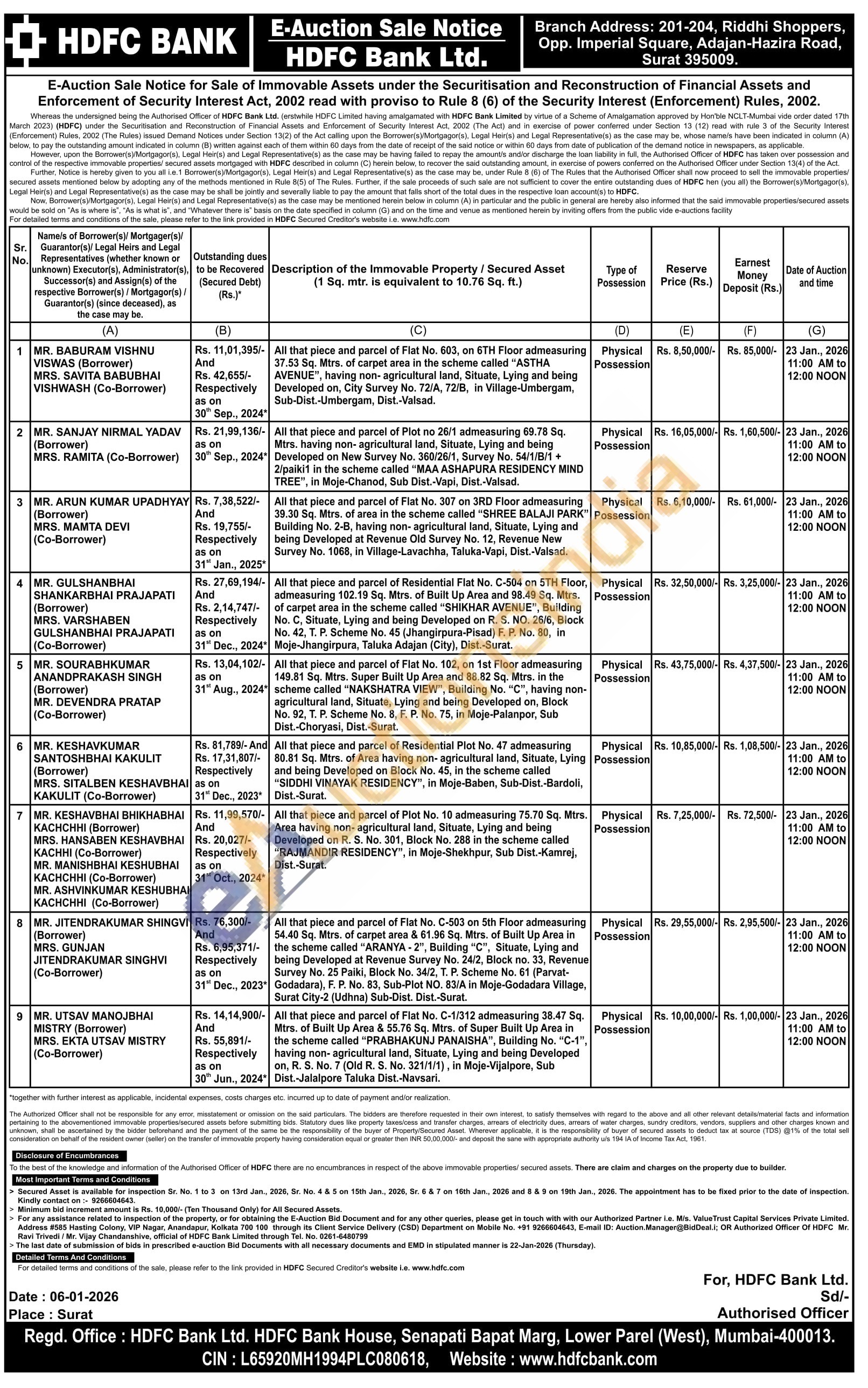 All that piece and parcel of Flat No. C-503 on 5th Floor admeasuring 54.40 Sq. Mtrs. of carpet area & 61.96 Sq. Mtrs. of Built Up Area in the scheme called "ARANYA - 2", Building "C", Situate, Lying and being Developed at Revenue Survey No. 24/2, Block no. 33, Revenue Survey No. 25 Paiki, Block No. 34/2, T. P. Scheme No. 61 (Parvat-Godadara), F. P. No. 83, Sub-Plot NO. 83/A in Moje-Godadara Village, Surat City-2 (Udhna) Sub-Dist. Dist.-Surat.