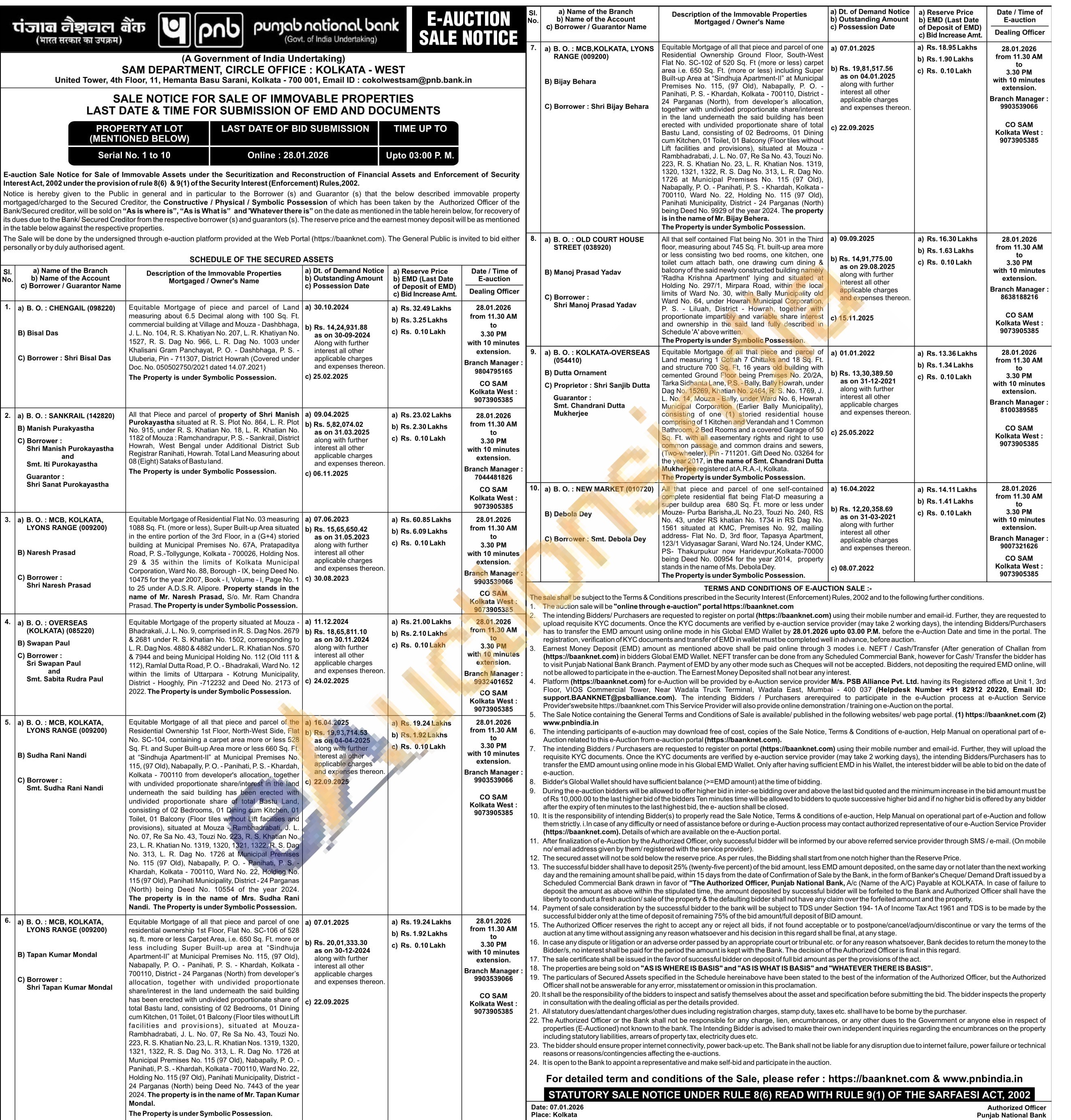 All that piece and parcel of one self-contained complete residential flat being Flat-D measuring a super buildup area 680 Sq. Ft. more or less under Mouze- Purba Barisha, JL No.23, Touzi No. 240, RS No. 43, under RS khatian No. 1734 in RS Dag No. 1561 situated at KMC, Premises No. 92. mailing address- Flat No. D, 3rd floor, Tapasya Apartment, 123/1 Vidyasagar Sarani, Ward No. 124, Under KMC, PS- Thakurpukur now Haridevpur, Kolkata-70000 being Deed No. 00954 for the year 2014, property stands in the name of Ms. Debola Dey.