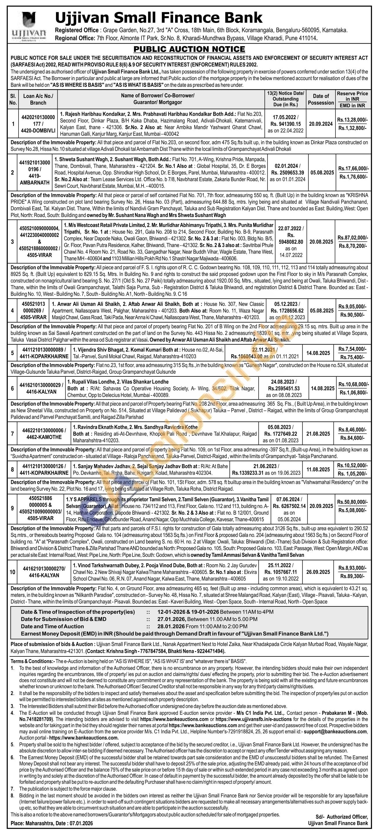 Description of the Immovable Property: All that piece and parcel of Flat No.203, on second floor, adm 475 Sq.fts built up, in the building known as Dinkar Plaza constructed on Survey No.28, Hissa No. 10 situated at village Adivali Dhokali tal Ambarnath Dist Thane within the local limits of Grampanchayat Adivali Dhokali