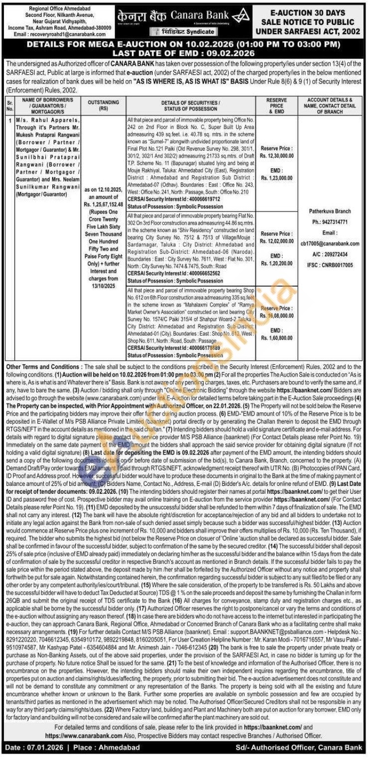 All that piece and parcel of immovable property bearing Shop No. 612 on 6th Floor construction area admeasuring 335 sq.feet in the scheme known as "Mahalaxmi Complex of "Ramya Market Owner's Association" constructed on land bearing City Survey No. 1574/C Paiki 315/4 of Shahpur Woard-2 Taluka City District: Ahmedabad and Registration Sub-District: Ahmedabad-01 (City). Boundaries: East: Shop No. 613, West: Shop No. 611, North: Road, South: Passage