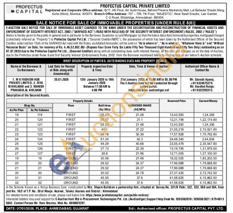 in the Scheme Known as a 'Atriya Business Zone' constructed by M/s. Shyam Buildcon a partnership firm, situated at: Survey No. 521/B Palki, 522, 523, 560 and 564, final plot No. 10/2 of T.P. No. 30 of Mouje: Asarwa, Taluka: Asarwa and District: Ahmedabad