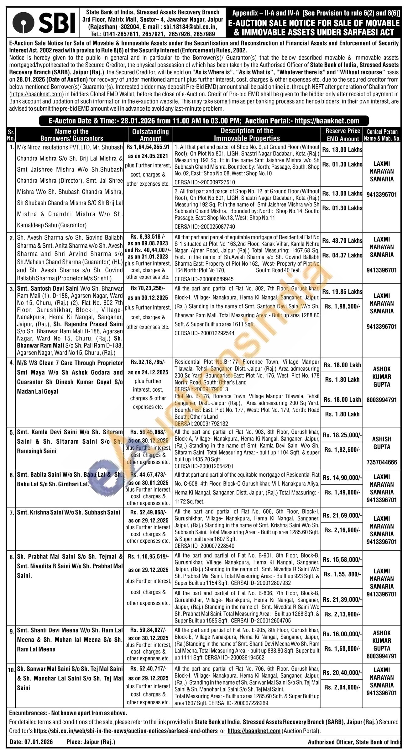 All the part and partial of Flat No. 706, 6th Floor, Gurushikhar, Block-I. Village- Nanakpura, Hema Ki Nangal, Sanganer, Jaipur, (Raj.) Standing in the name of Sh. Sanwar Mal Saini S/o Sh. Tej Mal Saini & Sh. Manohar Lal Saini S/o Sh. Tej Mal Saini. Total Measuring Area: - Built up area 1285.60 Sqft. & Super Built up area 1607 Sqft. CERSAI ID-200007228269
