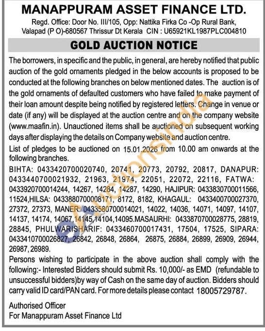 Manappuram Asset Finance Ltd Gold Auctions Auction in Thrissur