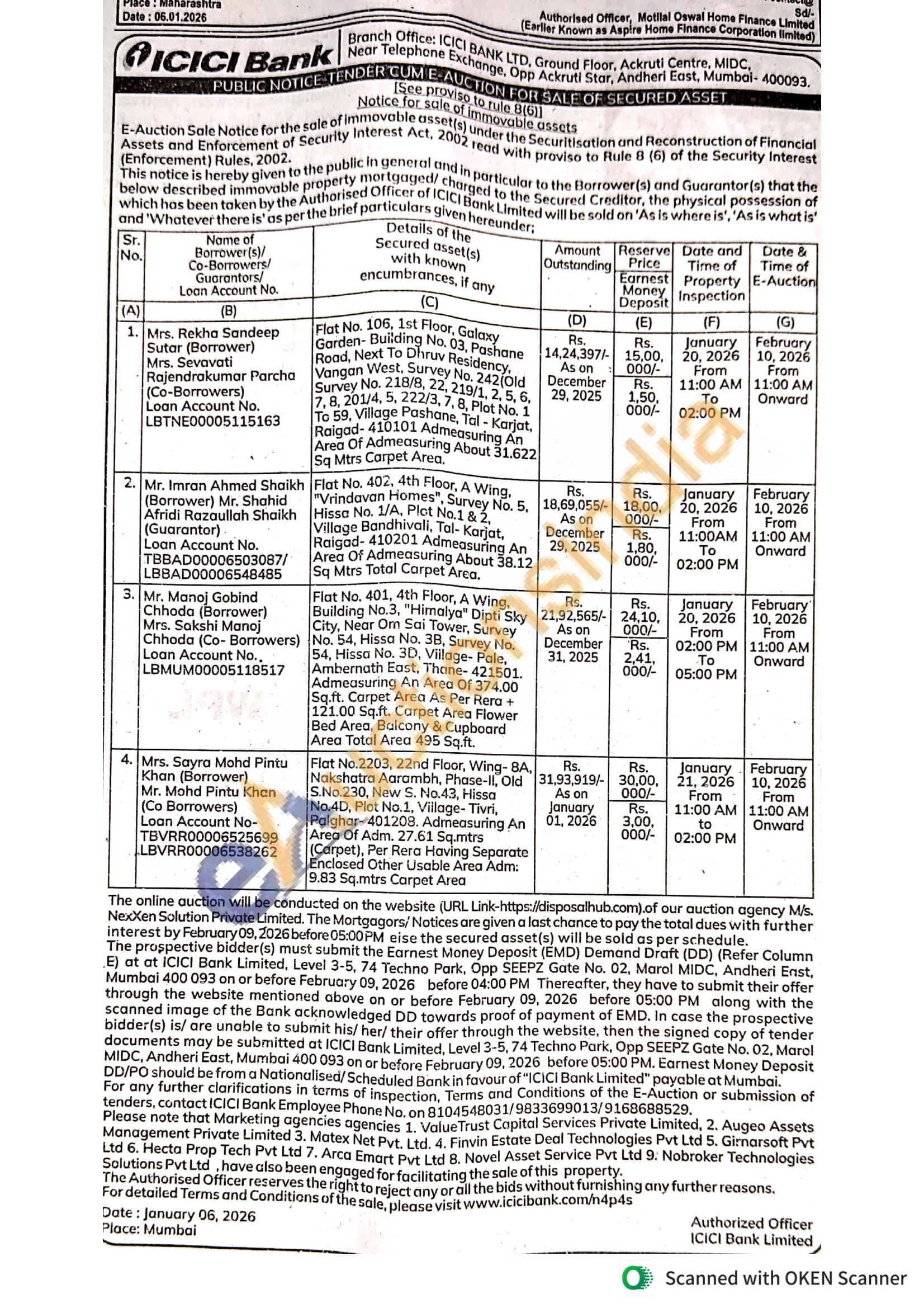 Flat No.2203, 22nd Floor, Wing-BA Nakshatra Aarambh, Phase-II, Old S.No.230, New S. No.43, Hissa No.4D, Plot No.1, Village-Tivri, Palghar-401208. Admeasuring An Area Of Adm. 27.61 Sq.mtrs (Carpet), Per Rera Having Separate Enclosed Other Usable Area Adm: 9.83 Sq.mtrs Carpet Area