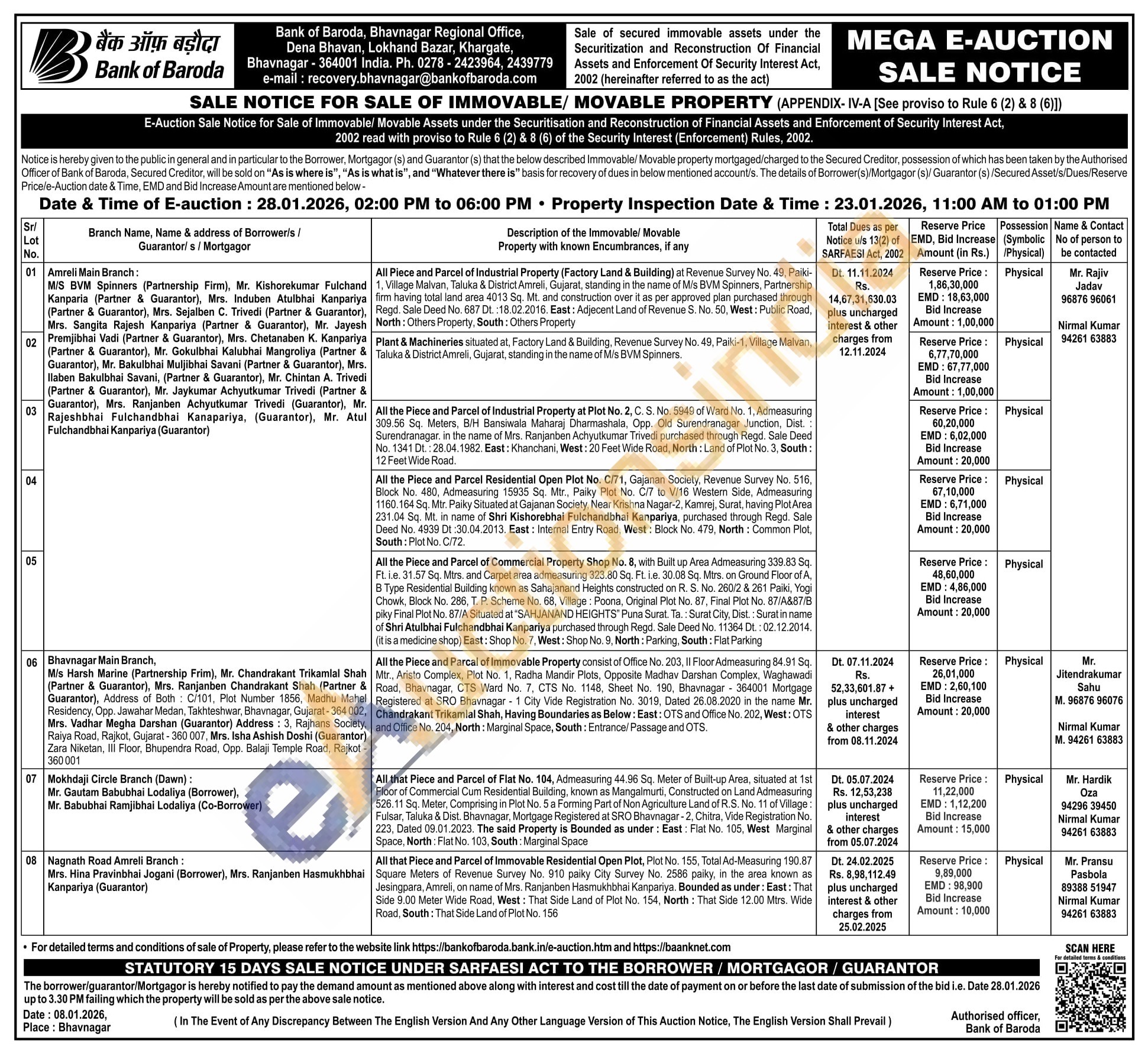 All Piece and Parcel of industrial Property (Factory Land & Building) at Revenue Survey No. 49, Paiki 1, Village Malvan, Taluka & District Amreli, Gujarat, standing in the name of M/s BVM Spinners, Partnership firm having total land area 4013 Sq. Mt. and construction over it as per approved plan purchased through Regd. Sale Deed No. 687 Dt. : 18.02.2016. East: Adjecent Land of Revenue S. No, 50, West: Public Road, North: Others Property, South: Others Property