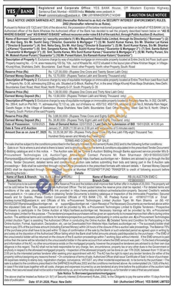 Exclusive charge by way of equitable mortgage on immovable property located at Property New No. X-352, Old MPL No. 289-K, built on Plot NO. 11, admeasuring 72.1/2 sq yds out of khasra no. 455/73/2, 455/73/4, situated at Gali No.8, Mohalla Ram Nagar, Gandhi Nagar, in the Village of Seelampur, Illaqa Shahdara, New Delhi. Boundaries: East: Other Property, West Gali No 8, North: Other's Property, South Portion of the said Property