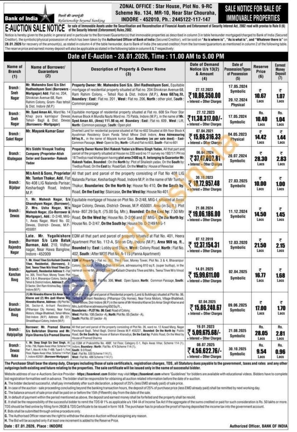 EQM all that part and parcel of property situated at Flat No. 401, Heera Apartment Plot No. 112-A, Silicon City, Indore (M.P.), Area 969 sq. ft., Bounded by: East: Lobby and Stairs, West: Colony Road, North: Flat No. 402, South: After MOS Plot No. A-119 (Panna Apartment)