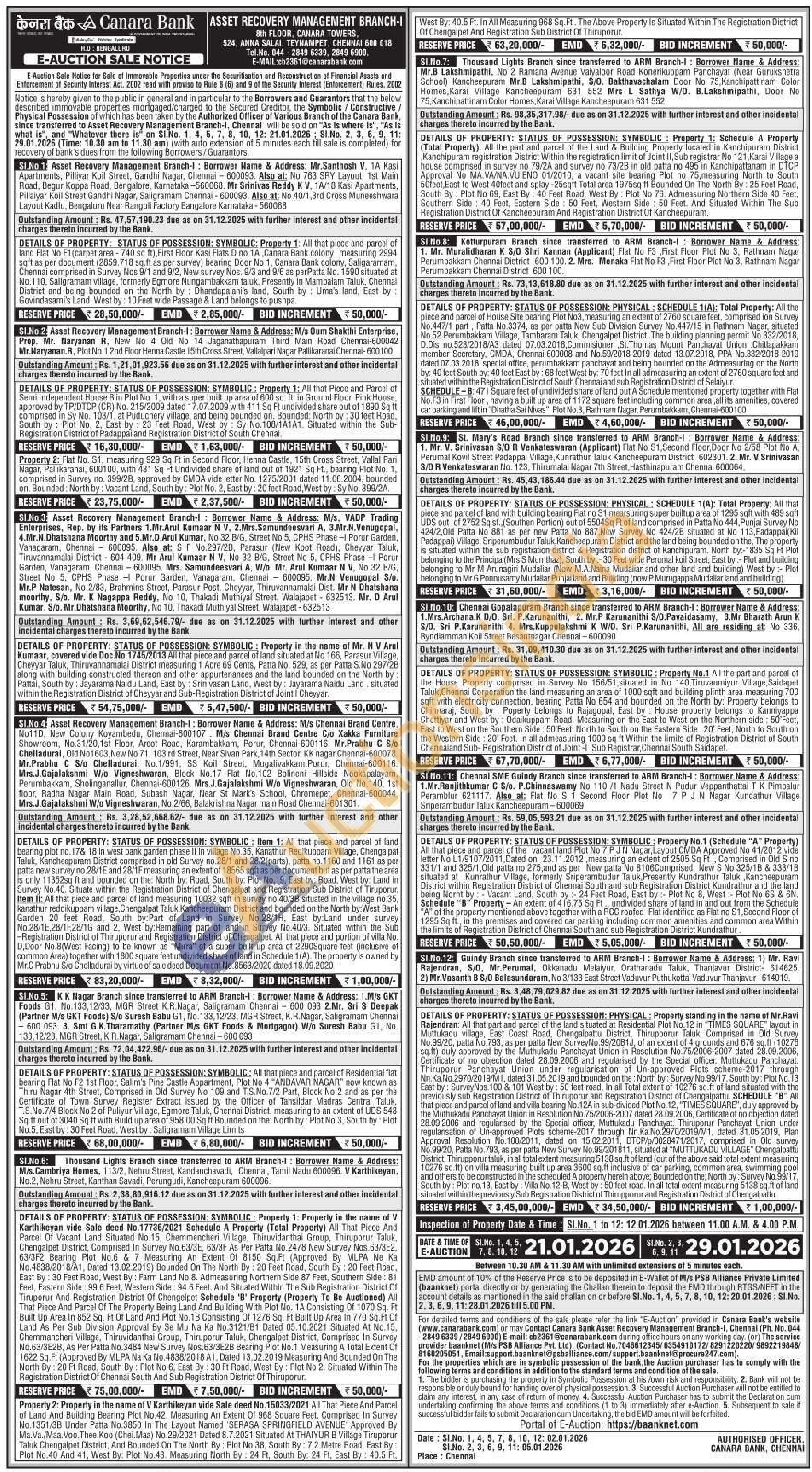 2) Property 1: All that Piece and Parcel of Semi Independent House B in Plot No. 1, with a super built up area of 600 sq. ft. in Ground Floor, Pink House, approved by TP/DTCP (CR) No. 215/2009 dated 17.07.2009 with 411 Sq Ft undivided share out of 1890 Sq ft comprised in Sy No. 103/1, at Puduchery village, and being bounded an. Bounded: North by: 30 feet Road, South by Plot No. 2. East by 23 Feet Road, West by Sy No.108/1A1A1. Situated within the Sub-Registration District of Padappai and Registration District of South Chennai.