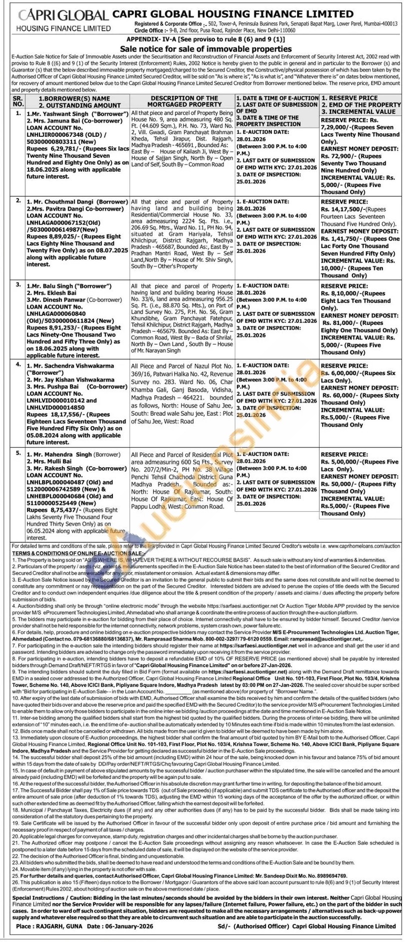 contact Authorised Officer, Capri Global Housing Finance Limited: Mr. Sandeep Dixit Mo. No. 8989694769.