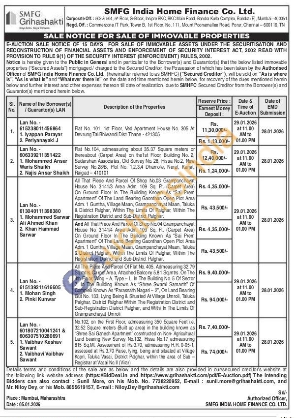 4) All That Piece And Parcel Of Shop No.04 Grampanchayat House No. 3141/4 Area Adm. 109 Sq. Ft. (Carpet Area) On Ground Floor In The Building Known As "Sai Prem Apartmenf Of The Land Bearing Gaonthan Open Plot Area Adm. 1 Guntha, Village Maan, Grampanchayat Maan, Taluka & District Palghar, Within The Limits Of Palghar, Within The Registration District and Sub-District Palghar.