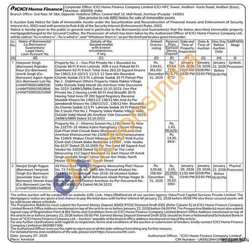Property No. 2-Khanna Sumari No 1230/5min Or New No 2327/5-16 Wakia Katra Ramgharia Chauni Nihang Gali Phat Wali Chowk Baba Bhodwala Tehsil And Dist Amritsar Khanasumari No 2326/5-16 Old Khanasumara No 1240/5 Wakya Chuni Nihanga Gali Phat Wali Kucha Choti Gali Chowk Baba Bodiwala 143001. Vide Vasika No 6137 Dated 25.10.2005 For The Land 66 Sqyard And Vasika No 10028 Dated 16.03.2010 For The Land Measuring 112 Sqyrd Bounded As East House Of Amrik Singh, santokh Singh, West House Are Wala, North House Of Manjit Singh, South Street