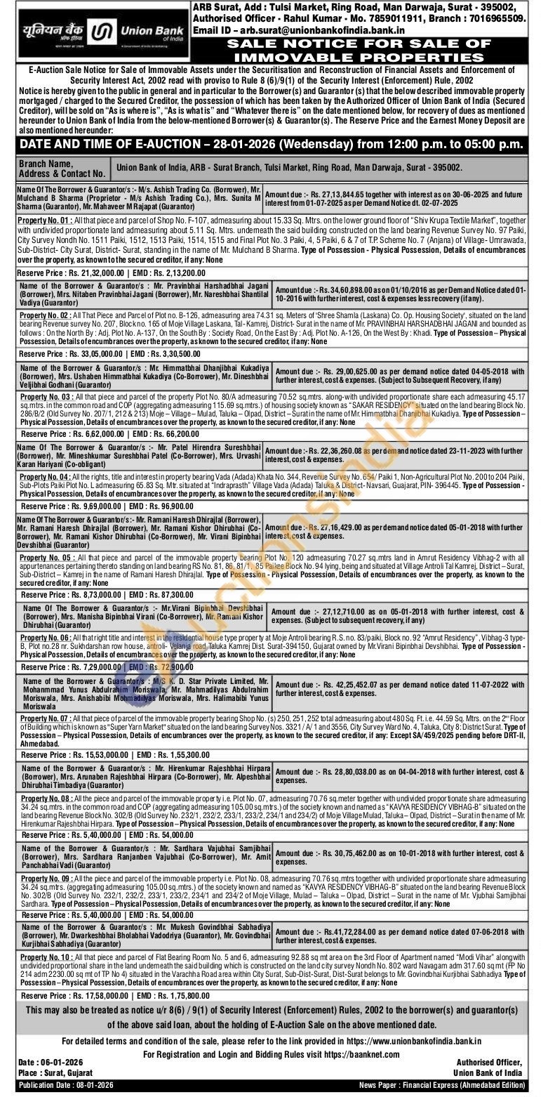 Contact No : Rahul Kumar Mo. 7859011911, Branch: 7016965509. Email ID - arb.surat@unionbankofindia.bank.in