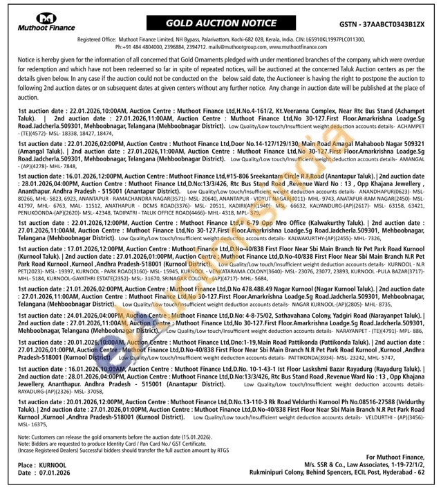 Muthoot Finance Ltd Gold Auctions Auction in Kochi