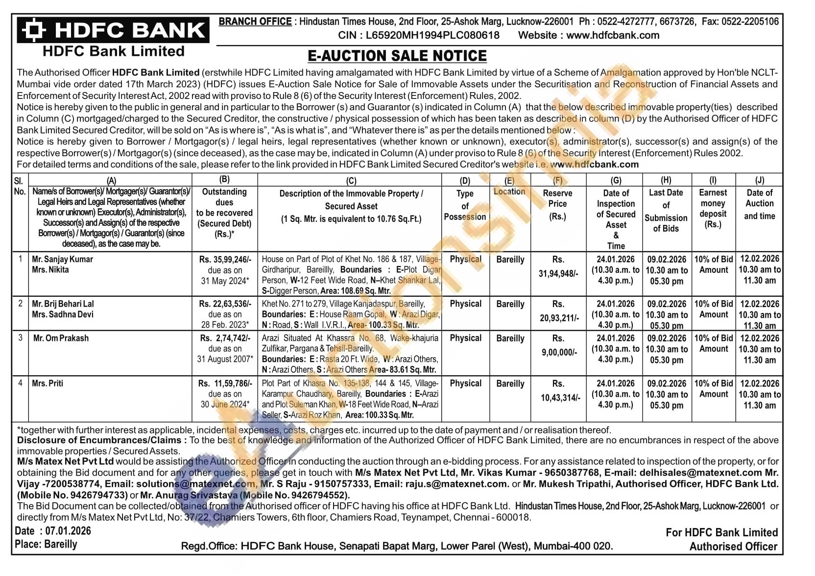 Mr. Vikas Kumar : 9650387768 /Mr. Anurag Srivastava : 9426794552