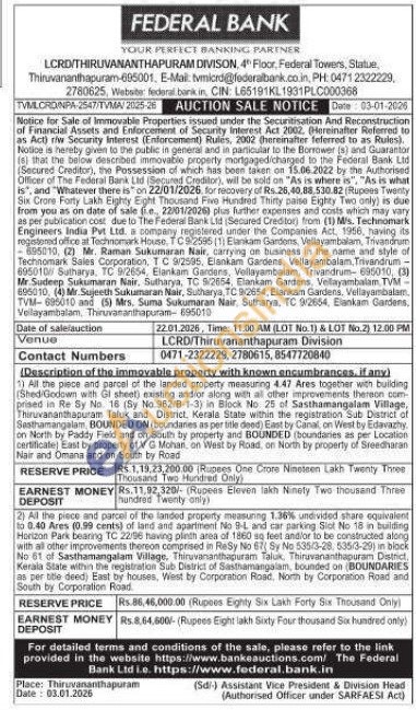 1) All the piece and parcel of the landed property measuring 4.47 Ares together with building (Shed/Godown with Gi Gi sheet) existing andior along with al other improvements thereon com prised in Re Sy No 16 (By No 962/8-1-3) in Block No 25 of Sasthamangalam Village, Thiruvananthapuram Taluk and District, Kerala State within the registration Sub District of Sesthamangalam, BOUNDED ON (boundaries as per title deed) East by Canal, on West by Edavaghry, on North by Paddy Field and on South by property and BOUNDED (boundaries as per Location certificate) East by property of VG Mohan, on West by Road, on North by property of Sreedharan Nair and Omana and on South by Road