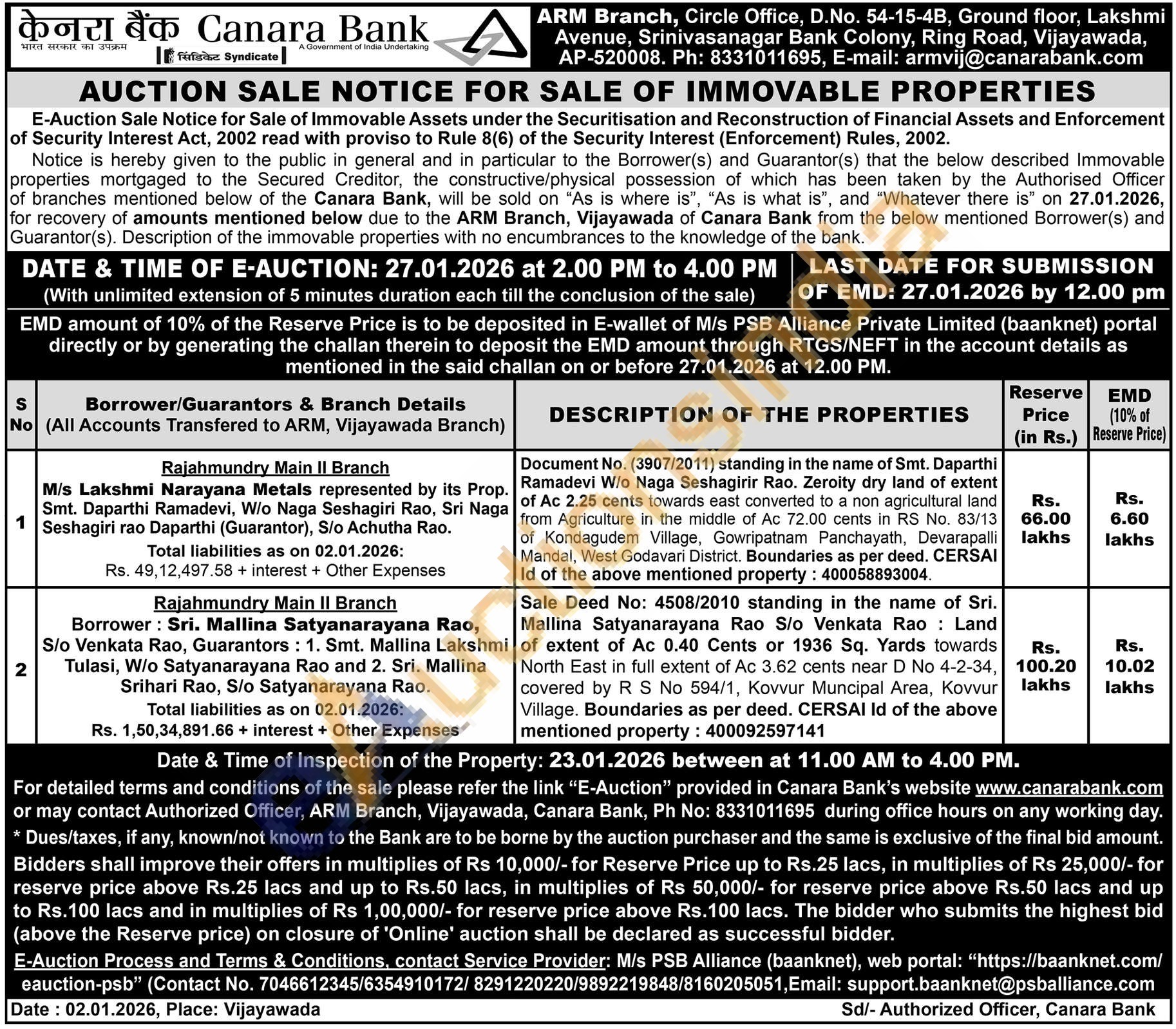 Document No. (3907/2011) standing in the name of Smt. Daparthi Ramadevi W/o Naga Seshagirir Rao. Zeroity dry land of extent of Ac 2.25 cents towards east converted to a non agricultural land from Agriculture in the middle of Ac 72.00 cents in RS No. 83/13 of Kondagudem Village, Gowripatnam Panchayath, Devarapalli Mandal, West Godavari District. Boundaries as per deed. CERSAI Id of the above mentioned property: 400058893004.