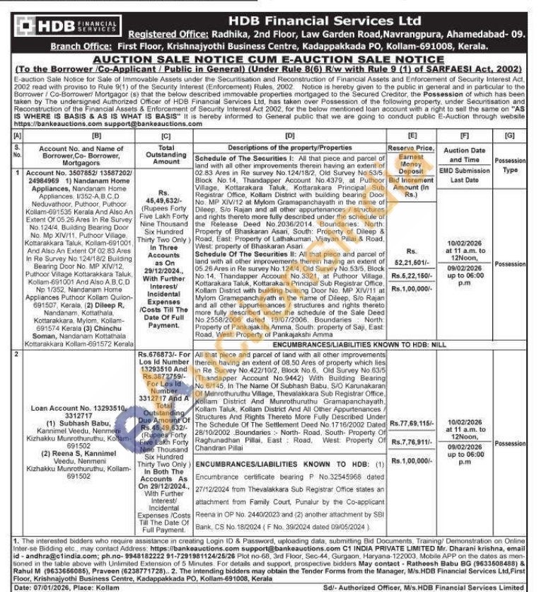 Schedule of The Securities I: All that piece and parcel of land with all other improvements therein having an extent of 02.83 Ares in Re survey No. 124/18/2, Old Survey No 53/5 Block No. 14, Thandapper Account No. 4379, at Puthoor Village, Kottarakara Taluk, Kottarakara Principal Sub Registrar Office, Kollam District with building bearing Door No. MP XIV/12 at Mylom Gramapanchayath in the name of Dileep. Sio Rajan and all other appurtenances / structures and rights thereto more fully described under the schedule of the Release Deed No.2036/2014. Boundanes: North Property of Bhaskaran Asari, South: Property of Dileep & Road, East: Property of Lathakuman, Vijayan Pillai & Road, West: property of Bhaskaran Asari Schedule Of The Securities II: All that piece and parcel of land with all other improvements therein having an extent of 05.26 Ares in Re survey No. 124/4, Old Survey No 53/5, Block No.14. Thandapper Account No.3321, at Puthoor Village. Kottarakara Taluk, Kottarakara Principal Sub Registrar Office. Kollam District with building bearing Door No. MP XIV/11 at Mylom Gramapanchayath in the name of Dileep, Sio Rajan and all other appurtenances/structures and rights thereto more fully described under the schedule of the Sale Deed No 2558/2006 dated 19/07/2006 Boundaries North Property of Pankajakshi Amma, South property of Saji, East Road, West: Property of Pankajakshi Amma