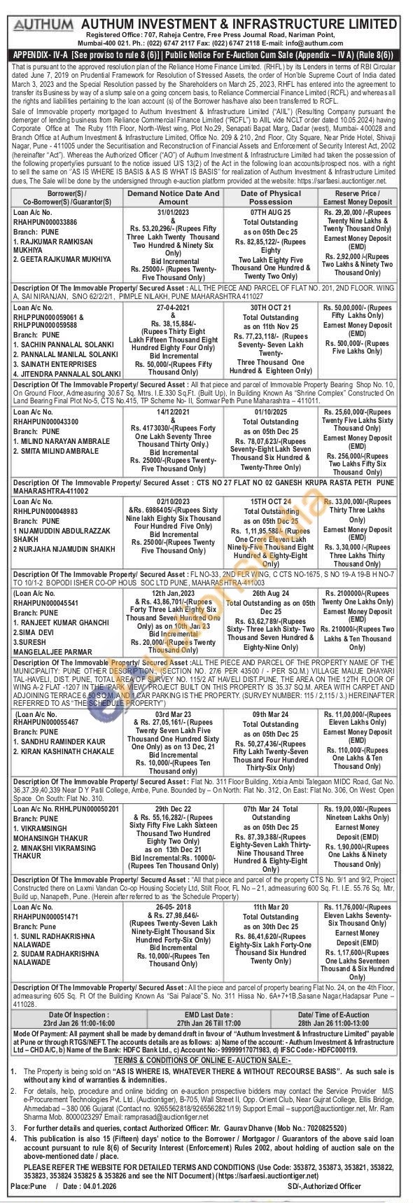 Description Of The Immovable Property/ Secured Asset: All the piece and parcel of property bearing Flat No. 24, on the 4th Floor, admeasuring 605 Sq. Ft. Of the Building Known As "Sai Palace S. No. 311 Hissa No. 6A+7+1B, Sasane Nagar, Hadapsar Pune 411028.